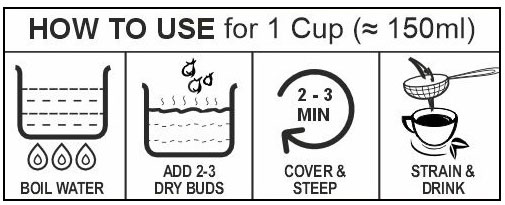 - Steep in hot water for 3-4 mins, strain and drink
