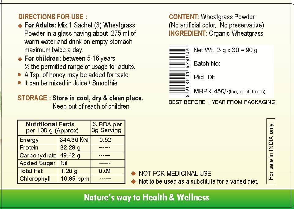 - Wheatgrass Powder paste (made in water + few drops milk + pinch of Turmeric) applied like a pack helps overcome skin problems